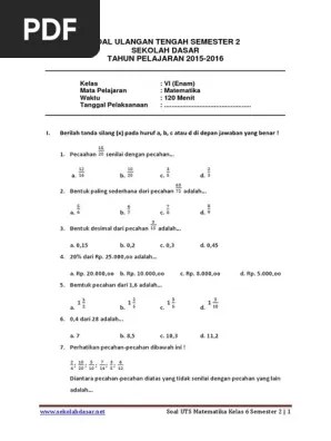 Download soal pts/uts matematika kelas 6 sd/mi pilihan ganda & essay semester 2 (genap) dan kunci jawaban kurikulum 2013 (k13) revisi 2018 tahun .